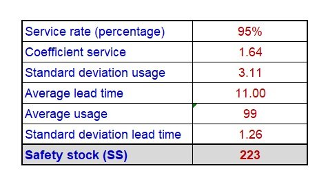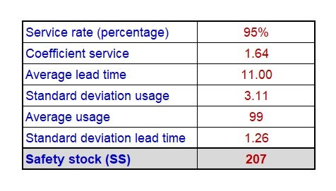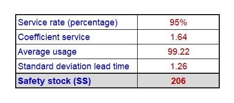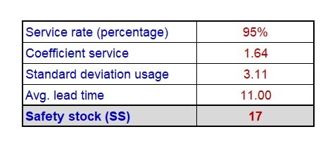 In our example, safety stock calculation is