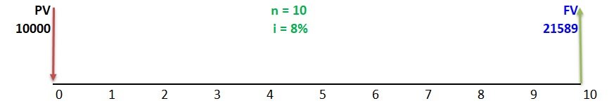 • Below chart mentioned when depositing $10,000 for 10 years at 8% interest, $21,589 will be received.