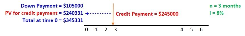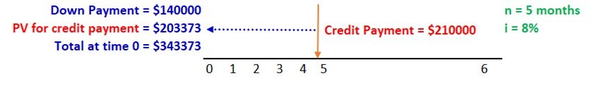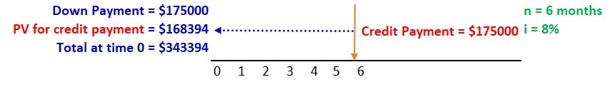 For example, if there are two offers that are the same in all conditions, but the method of payment is different, the first offer is 30% deposit and 70% after 5 months, the second offer is 40% deposit and 60% after 7 months. We want to know what is the offer with less total value of the paid amount.